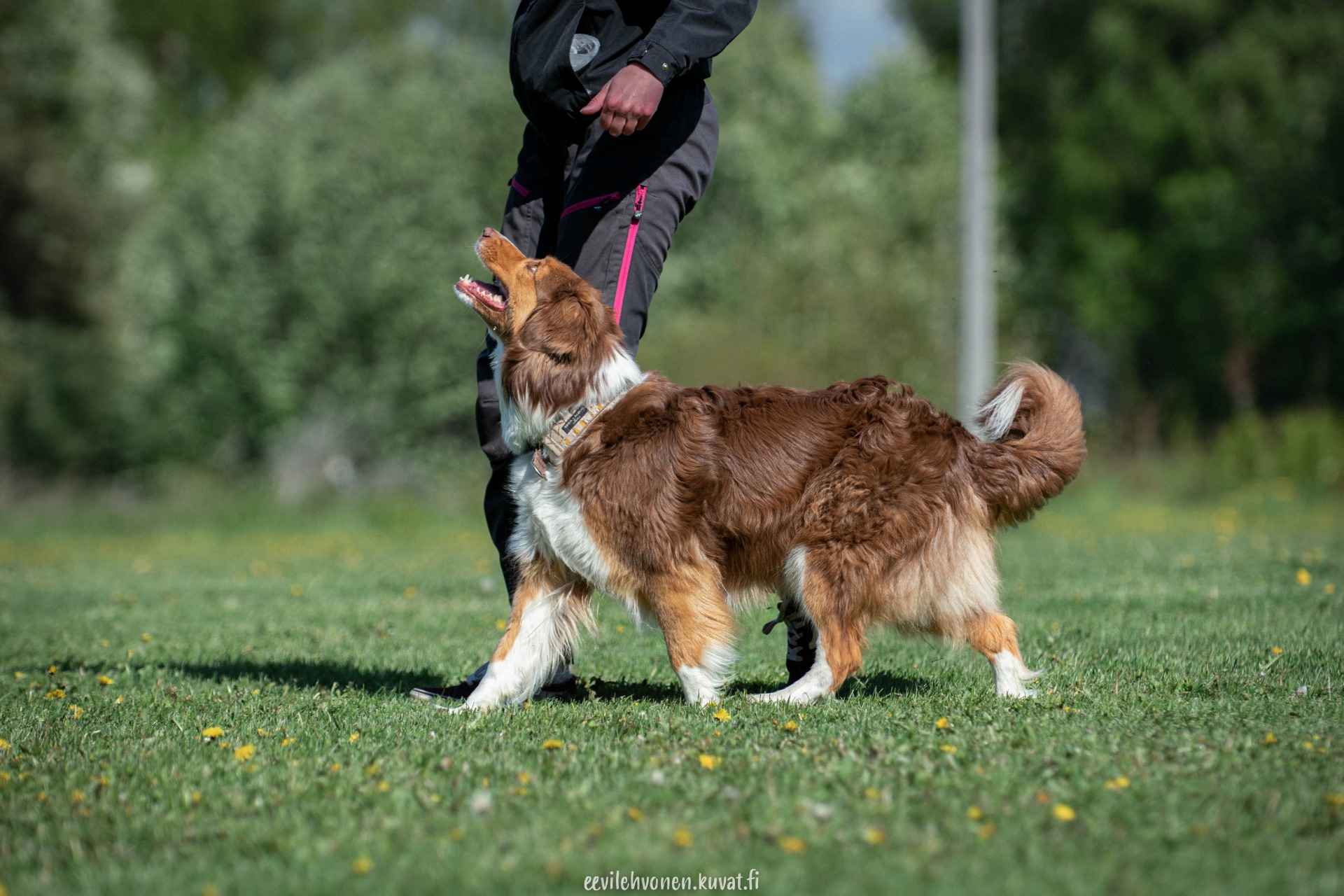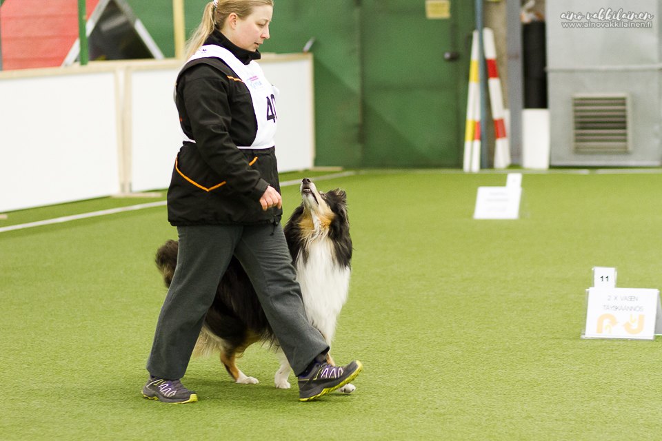 - Tottelevaisuuskaaviosta ensimmäisenä suoritetaan kytkettynä seuraaminen, joka sisältää normaalin temmon, nopean temmon ja hitaan temmon osuudet, täyskäännökset, käännökset oikealle ja vasemmalle, pysähdyksen sekä henkilöryhmän.