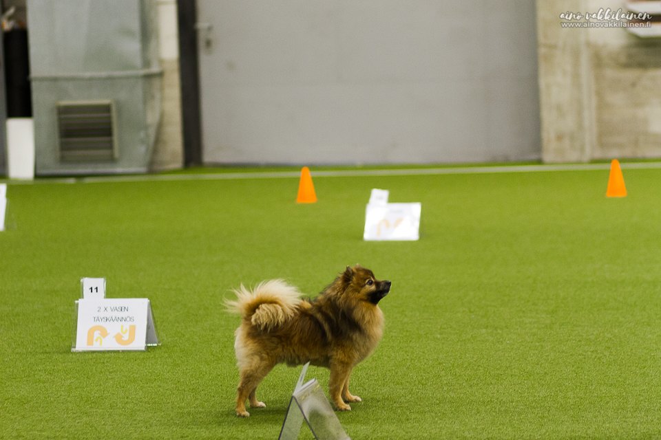 - Nouto; koira noutaa noutoesineen, joka voi olla melkein mikä vain alle 1 kg painoinen esine ja luovuttaa sen istuallaan. Esineellä ei saa leikkiä eikä sitä saa pureskella, mutta koira saa korjata otetta kolme kertaa.