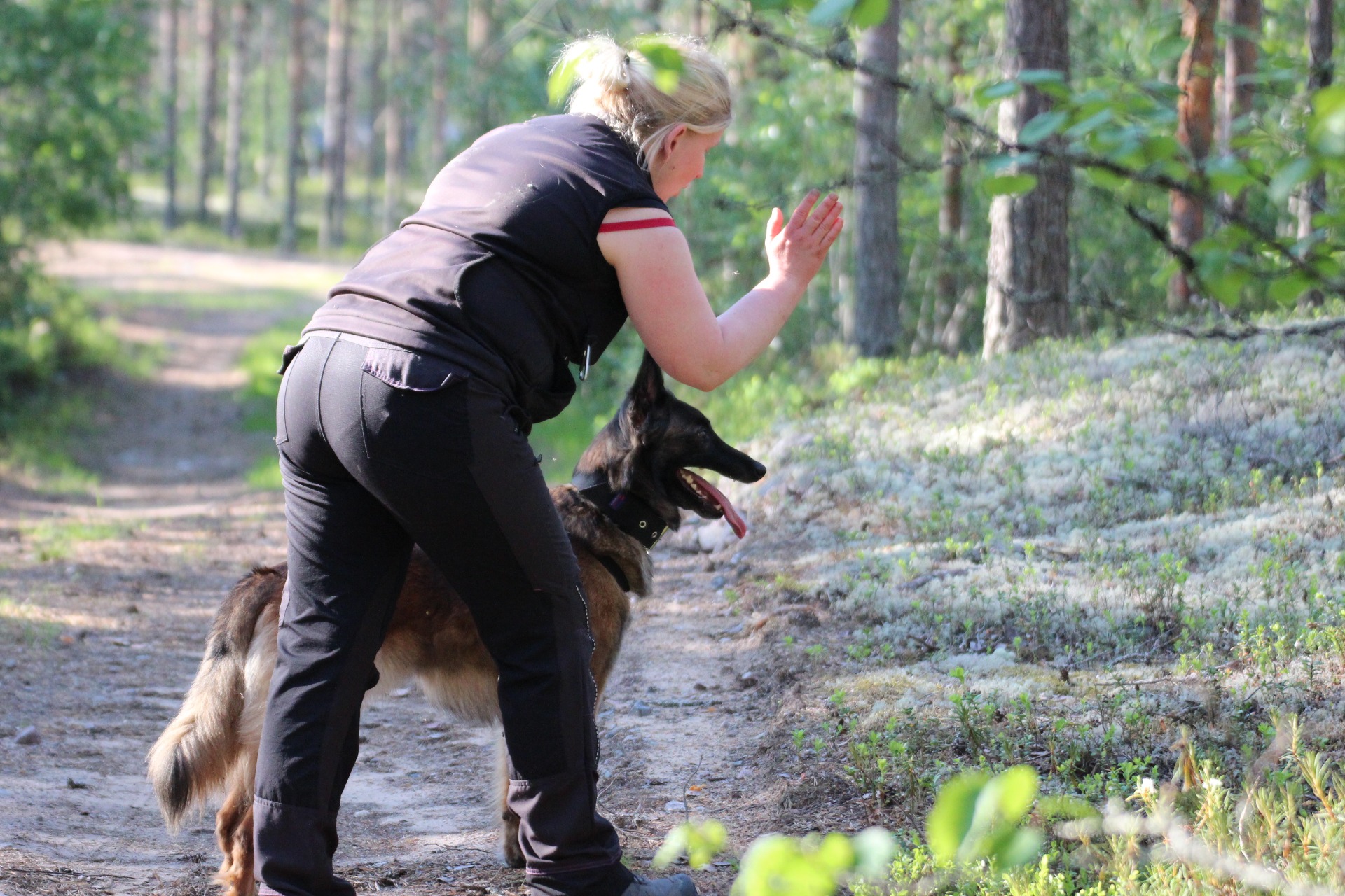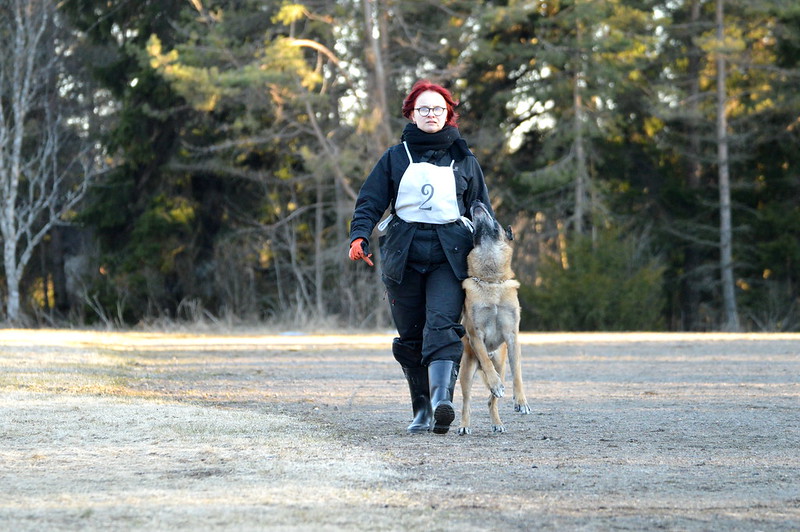 - Etsintä ja kuljetus; suoritetaan luokissa 2 ja 3. Maalimies piiloutuu johonkin kentällä ennakkoon sovitusta piilosta. Koiran tulee etsiä maalimies rajatun ajan sisään ja jäädä ilmaisemaan maalimies haukkuen. Tuomarin merkistä maalimies lähtee liikkeelle ja koiran tulee vartioida maalimiestä intensiivisesti. Kuljetuksen aikana maalimiesvoi ylittää esteitä ja muilla tavoin estää koiraa. Maalimies yrittää paeta koiralta kolmesti, jolloin koiran tulee välittömästi pysäyttää tämä purren. Maalimiehen jokaisesta saavuttamasta metristä menettää pisteitä.
